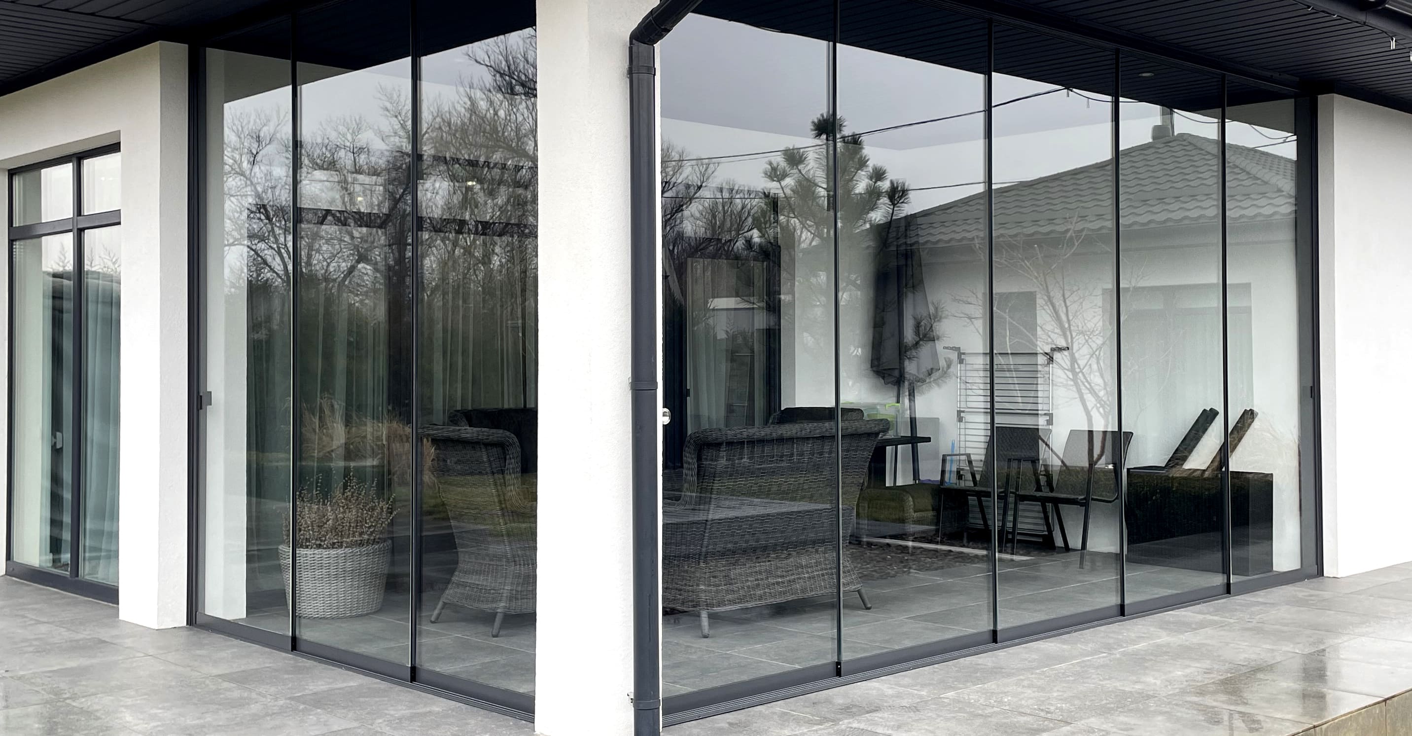 3 (три) суцільноскляні конструкції Розсувні системи SLIDING NEWАлюмінієвий профіль підбирається на об’єкті індивідуально по каталогу RAL: антрацит.Заповнення: гартоване скло прозоре 10 мм.Нержавіюча фурнітура для розсувних систем, смарт ручка.⠀